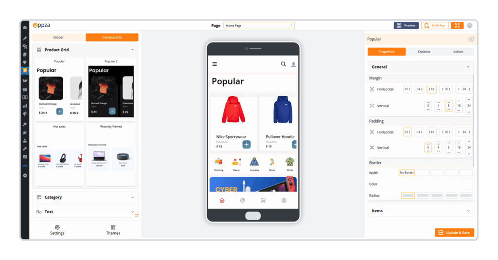 Effortlessly design your mobile app with Appza’s intuitive drag-and-drop interface. Simply select, arrange, and customize components. No coding or technical skills required.