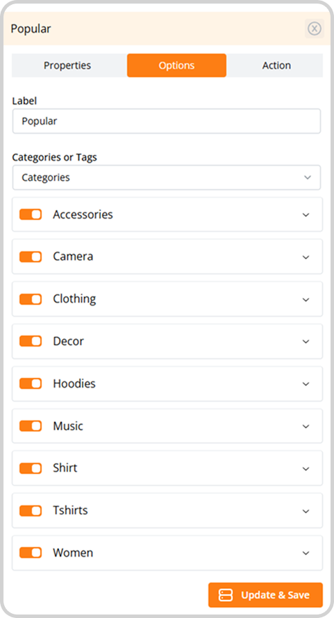 Choose your them to customize your website and mobile application.